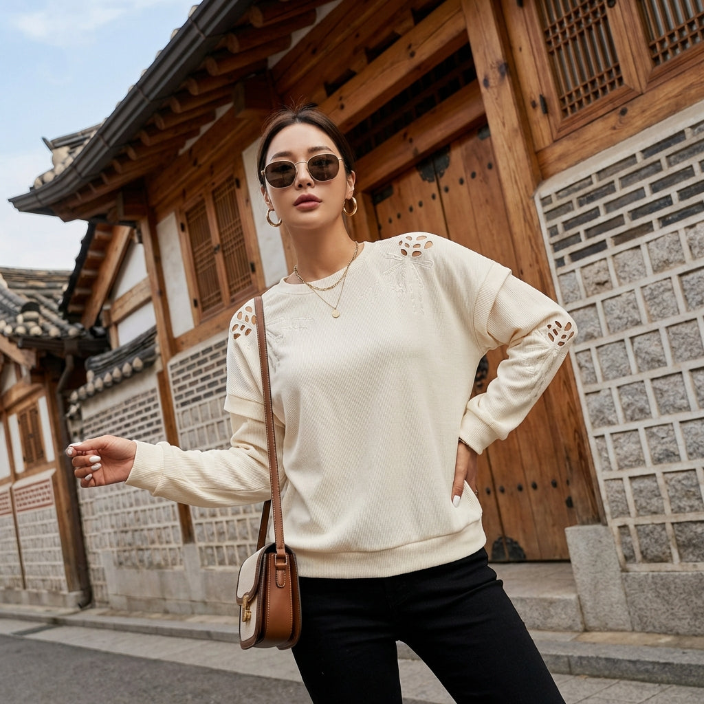 Adotta un look casual e stiloso con la nostra felpa girocollo a maniche lunghe. Il suo design unico con sottili intagli aggiunge un tocco di originalità a questo classico intramontabile. Perfetta per le tue giornate casual o le uscite con gli amici! ✨