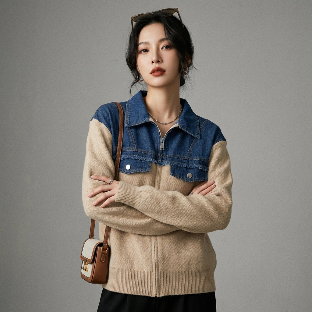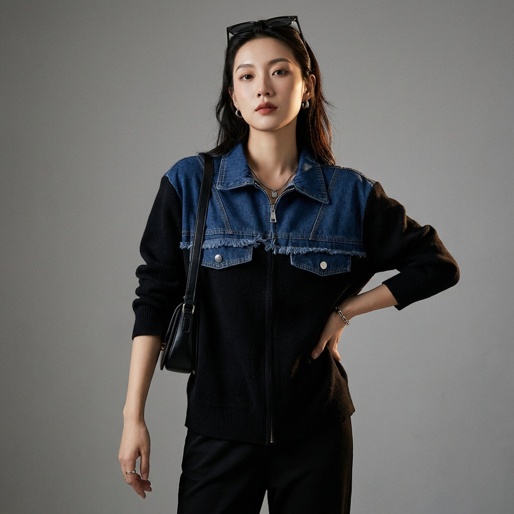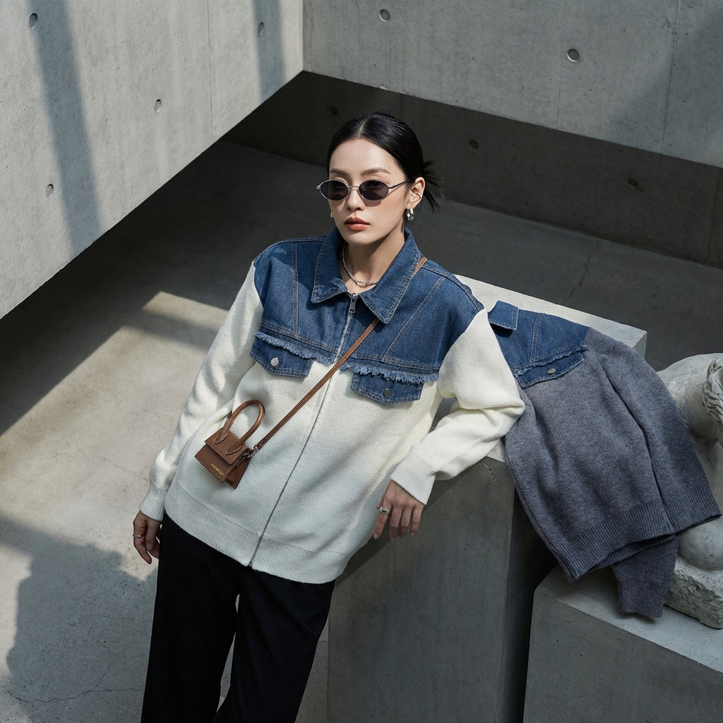 Adotta un look casual e alla moda con il nostro gilet con zip in denim e maglia. Il suo taglio versatile e il suo stile moderno lo rendono un capo irrinunciabile del tuo guardaroba per un tocco casual chic! ✨