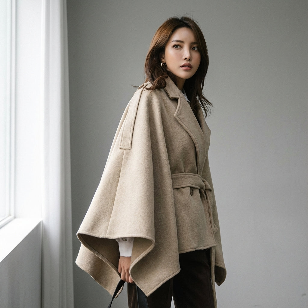 - Gaya: Fesyen Korea, Elegan, Chic Bandar, Komuter. Diinspirasikan daripada trend Korea terkini, poncho jubah ini menambahkan sentuhan kecanggihan dan kemodenan pada almari pakaian anda.