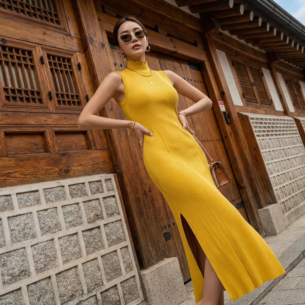 - Gaya: Minimalis, Bergaya, Trendi. Diinspirasikan oleh K-fashion, gaun ini menggabungkan kesederhanaan dan kecanggihan, sesuai untuk gaya bandar atau malam santai.
