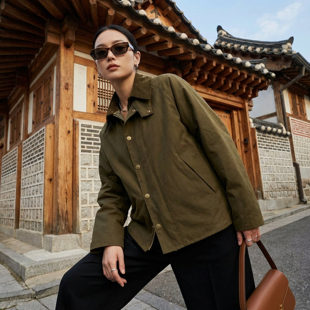 - Gaya: Streetwear, K-fashion, Retro, Kasual. Sesuai untuk penampilan bandar yang diinspirasikan oleh trend Korea.