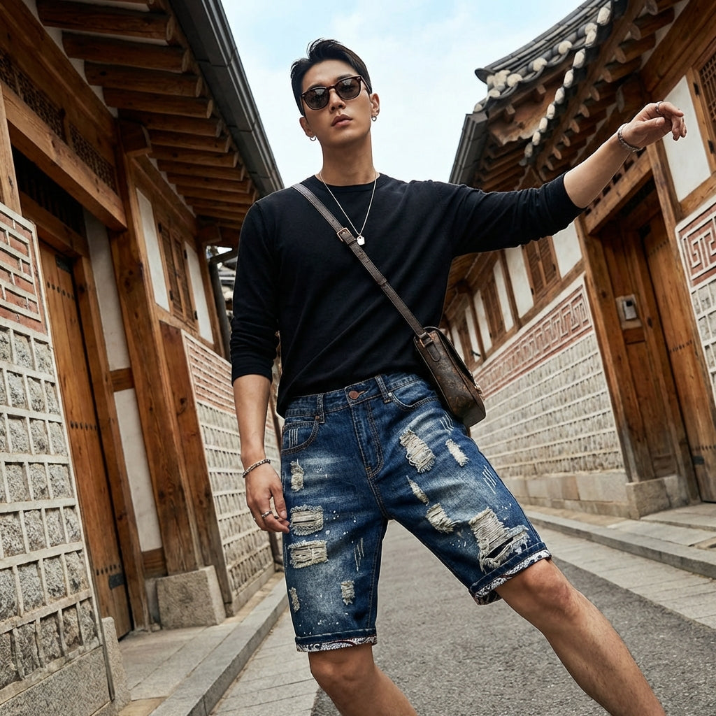 - Gaya: Streetwear, Kasual, Fesyen Korea. Seluar pendek ini merangkumi semangat urban dan kasual fesyen Korea, sesuai untuk penampilan yang berani dan bergaya.