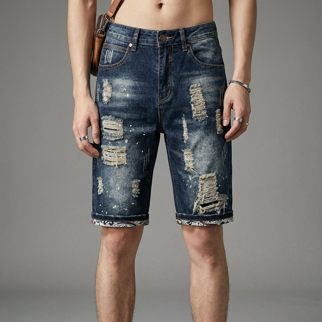 Dapatkan penampilan kasual dan bergaya dengan seluar pendek denim lusuh kami, sesuai untuk hari yang cerah. Seluar pendek ini menampilkan perincian koyak halus dan lipatan pada kelim untuk sentuhan streetwear. Sesuai untuk gaya yang berani dan selesa! ☀️