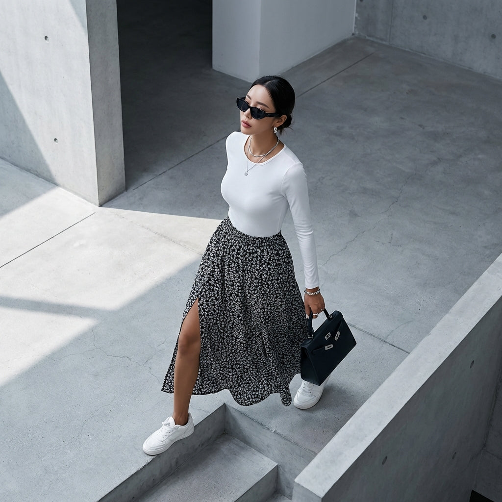 Skirt ini adalah item penting untuk almari pakaian yang serba boleh, mampu menyesuaikan diri dengan keinginan harian anda sambil membawa sentuhan kehalusan Korea.