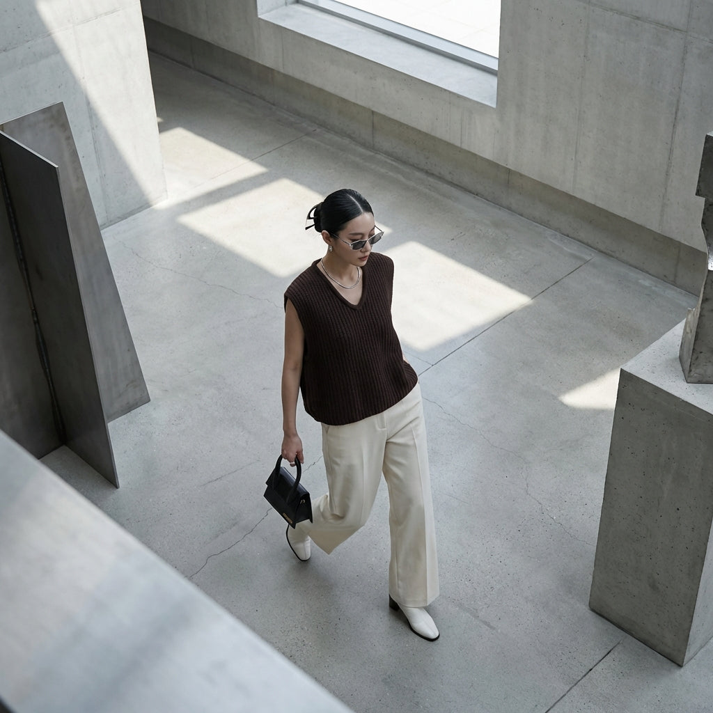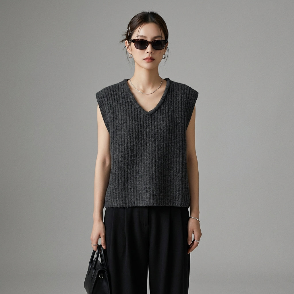 - Gaya: Minimalis, Kasual, K-fashion. Rompi ini melambangkan keanggunan yang sederhana dan serba boleh, sesuai untuk gaya Korea moden dan selesa.
