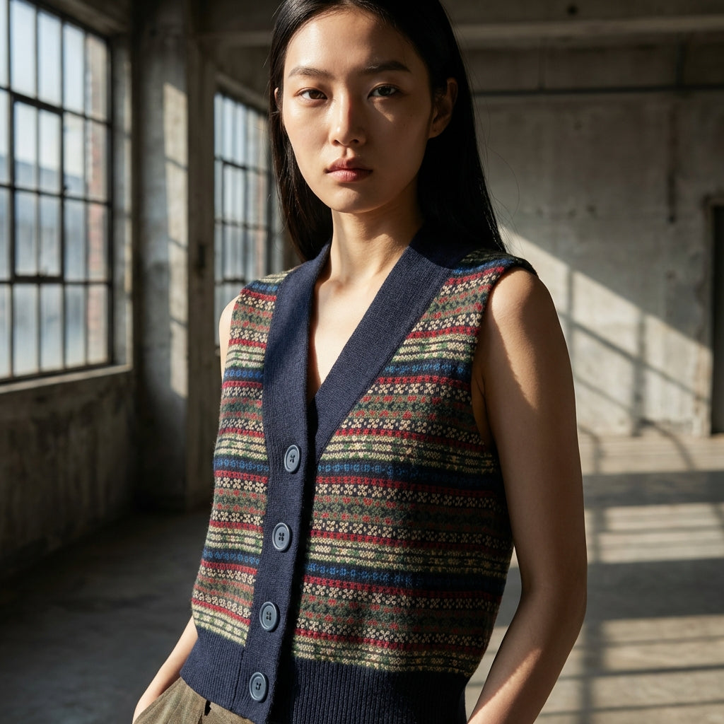 Tampil bergaya urban dengan vest rajutan jacquard kami, sesuai untuk menambahkan sentuhan keaslian pada pakaian anda. Corak bercetak dan potongan elegan menjadikannya item fesyen Korea yang mesti ada! ✨