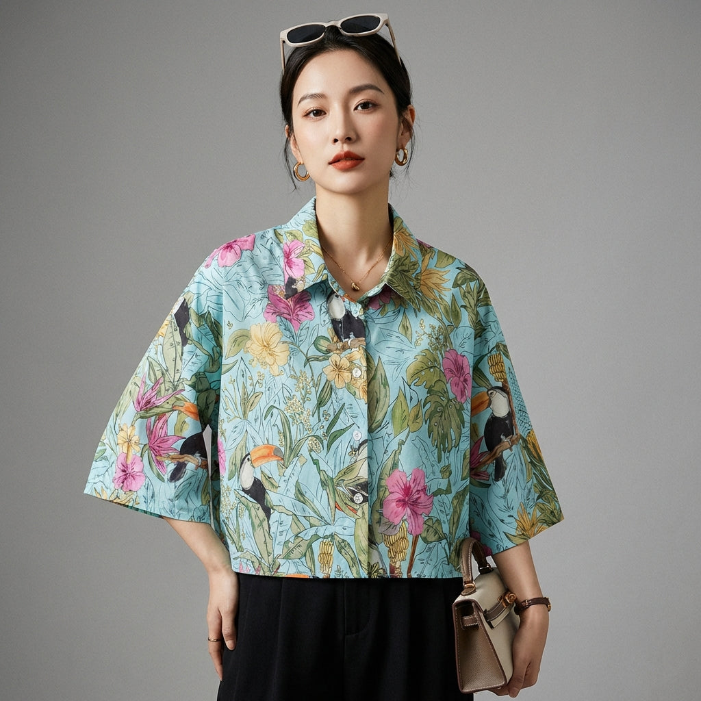 - Gaya: K-fashion, Streetwear, Bohemian, Bergaya. Kemeja ini melambangkan semangat santai dan bergaya fesyen Korea, dengan sentuhan bunga moden.