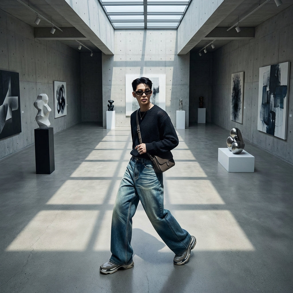 - Gaya: Streetwear, Vintaj, Kasual, K-fashion. Seluar jeans ini merangkumi estetika fesyen Korea yang santai dan bergaya, sesuai untuk penampilan bandar dan moden.