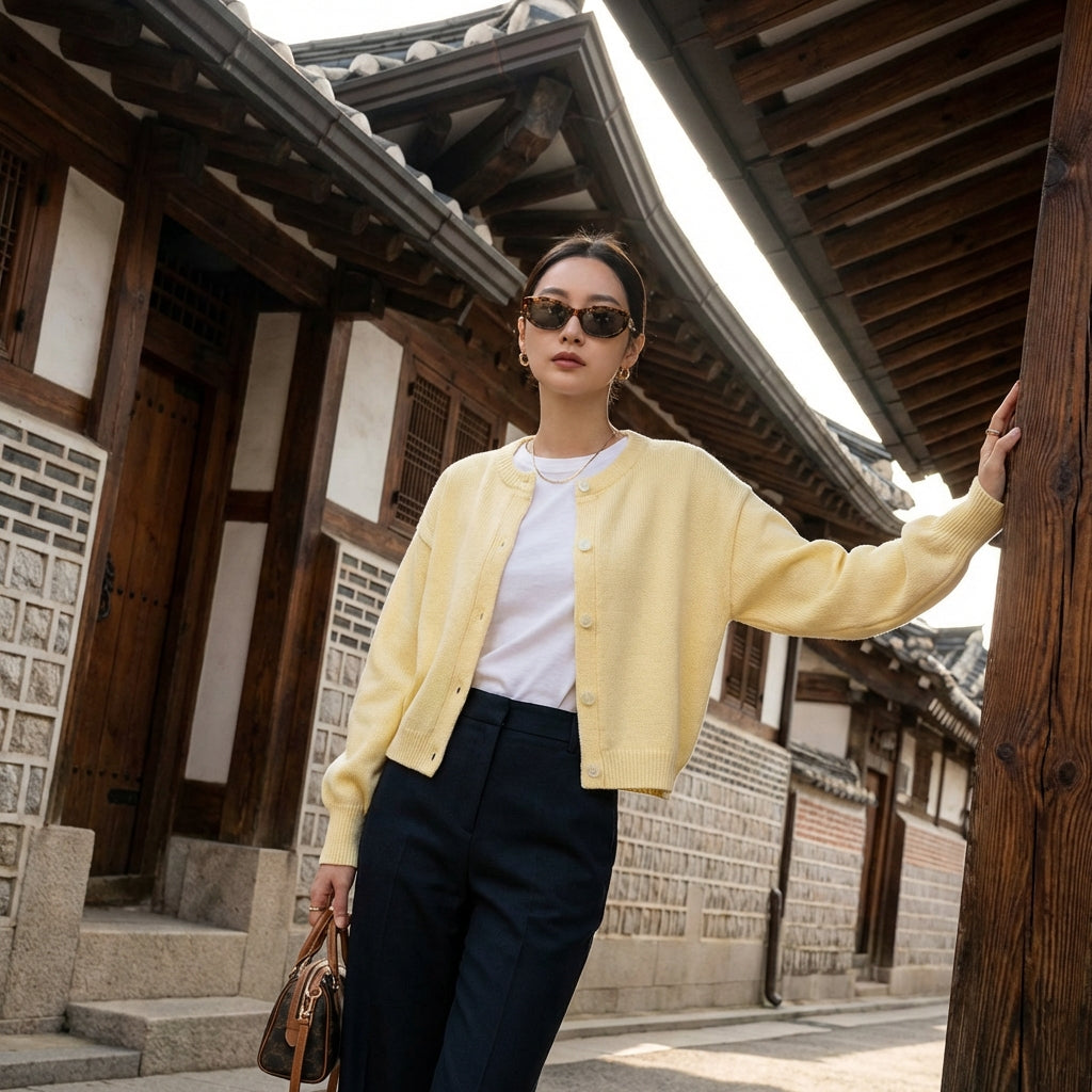 - Stijl: Minimalistisch, Casual, K-fashion. Dit vest belichaamt de discrete elegantie en moderniteit van de Koreaanse stijl, perfect voor een dagelijkse of meer verfijnde look.