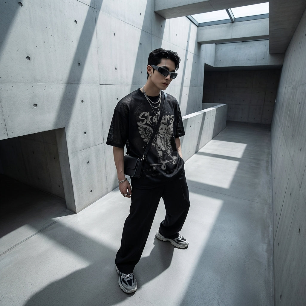 - Stijl: Streetwear, Hip Hop, Trendy. Dit T-shirt belichaamt de relaxte en gedurfde geest van stedelijke mode, geïnspireerd op K-fashion trends.