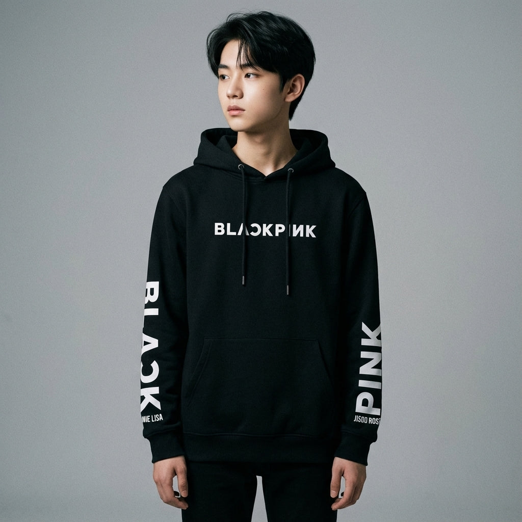 De officiële Blackpink hoodie is een hoodie van katoen en polyester die erg populair is bij KPOP-fans. Hij is wereldwijd beroemd dankzij zijn ontwerpen op de mouwen.
