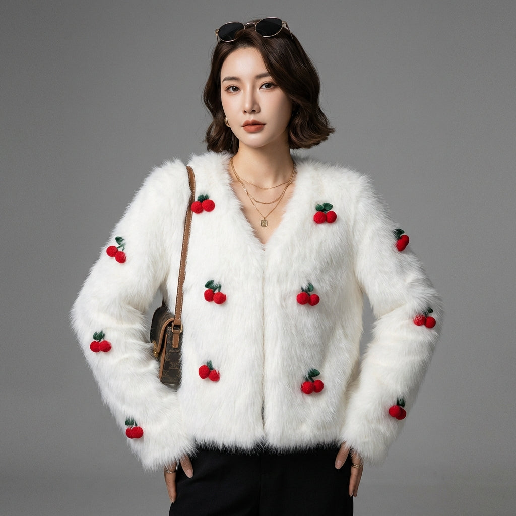 Voeg een vleugje frisheid en originaliteit toe aan je garderobe met dit 3D Kersen jasje, perfect voor een casual en charmante look.