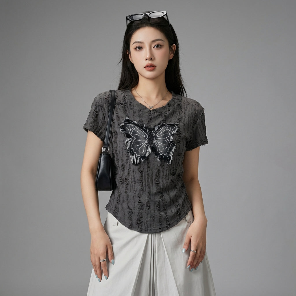 Få en avslappet og trendy look med vår oversize T-skjorte prydet med et delikat sommerfuglmønster. Den romslige passformen og det myke stoffet gjør den til et must-have for en selvsikker og komfortabel streetwear-stil! 🦋