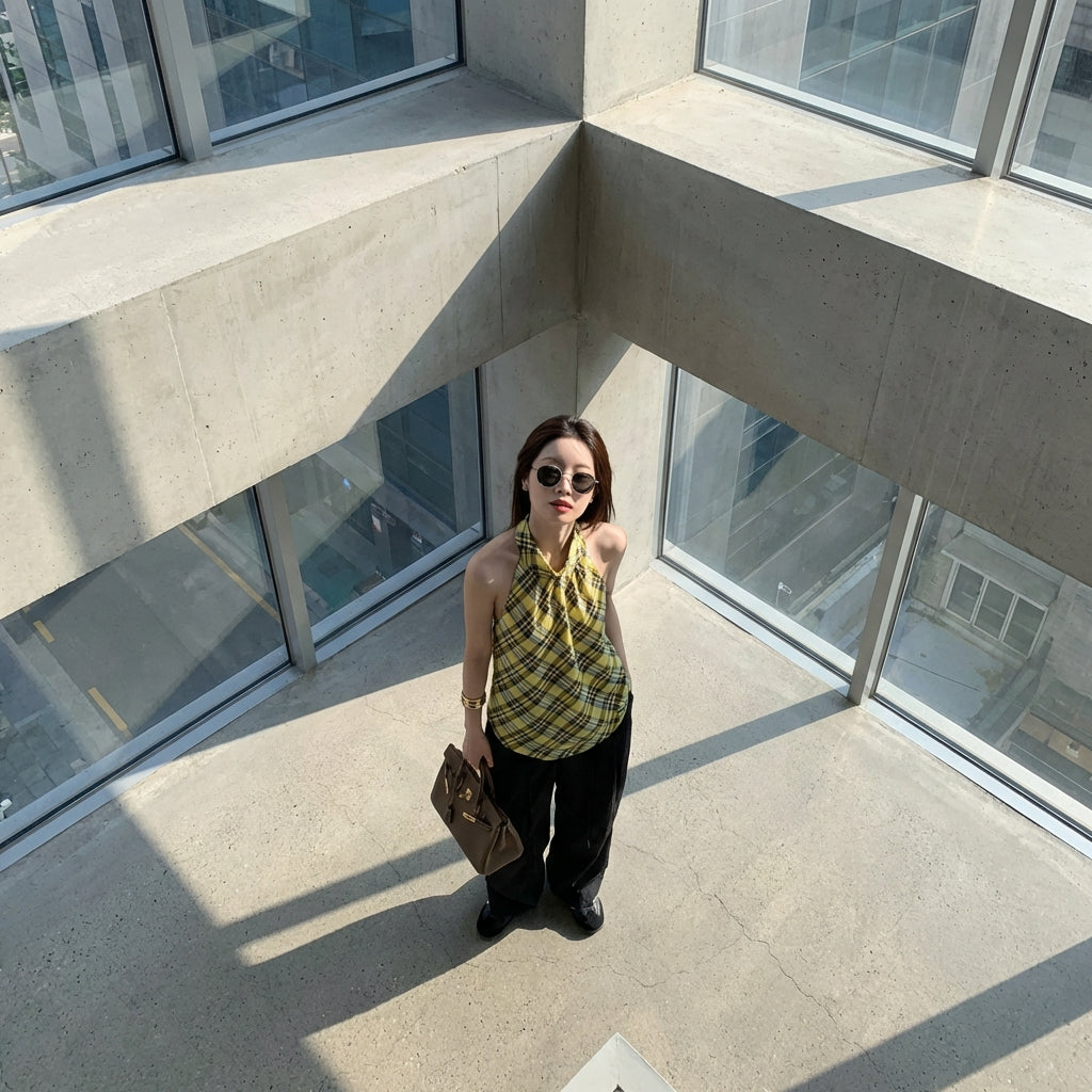 Podkreśl swój styl tym crop topem w kratkę, z odważnym odkrytymi plecami i dekoltem typu halter. Jego krótki, dopasowany krój jest idealny na słoneczne dni lub modne wieczory. Must-have dla ostrego i nowoczesnego wyglądu! 🔥