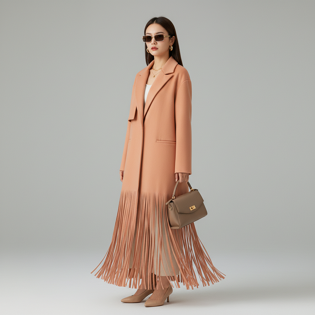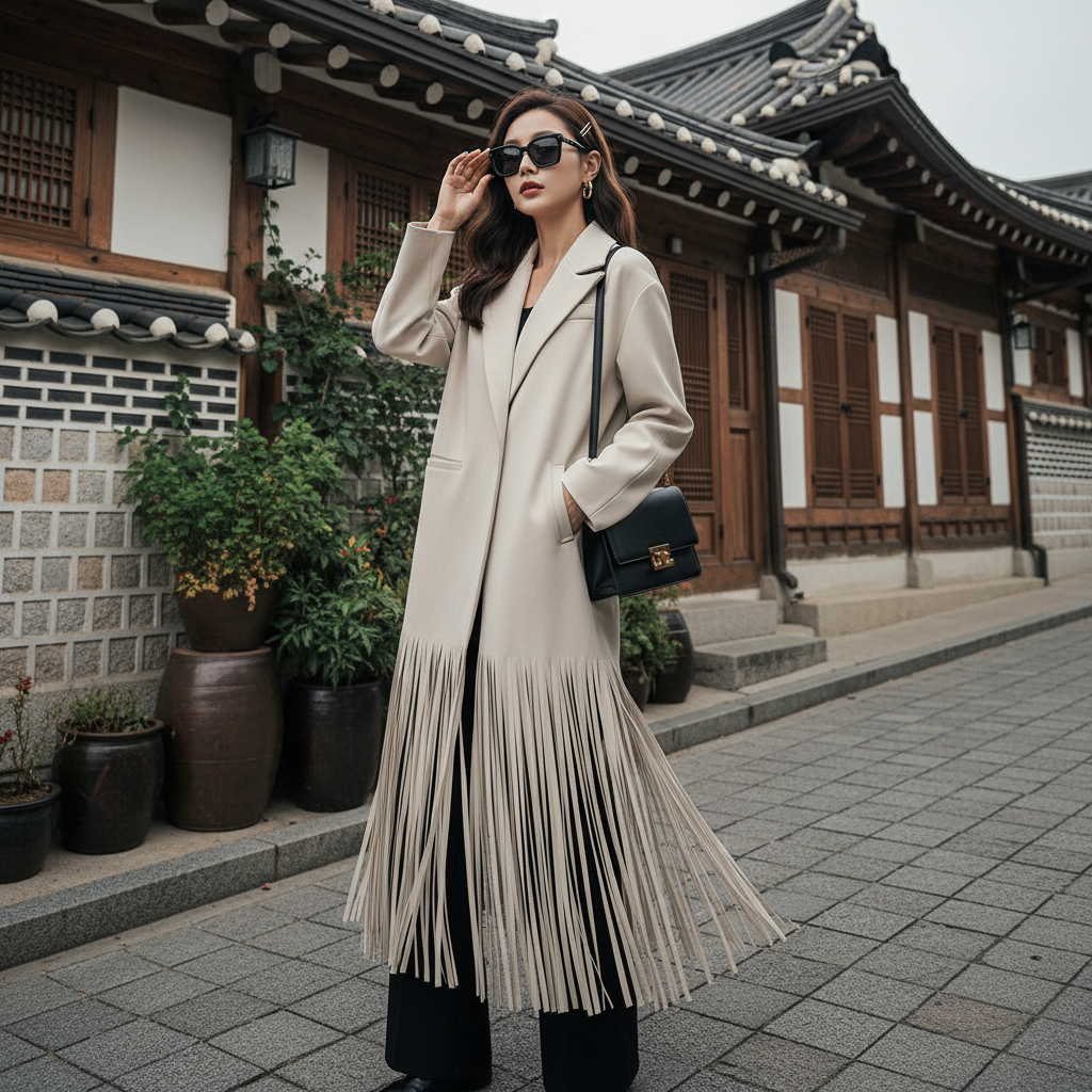 Trench-coat long minimaliste couleur abricot - Mode K-fashion