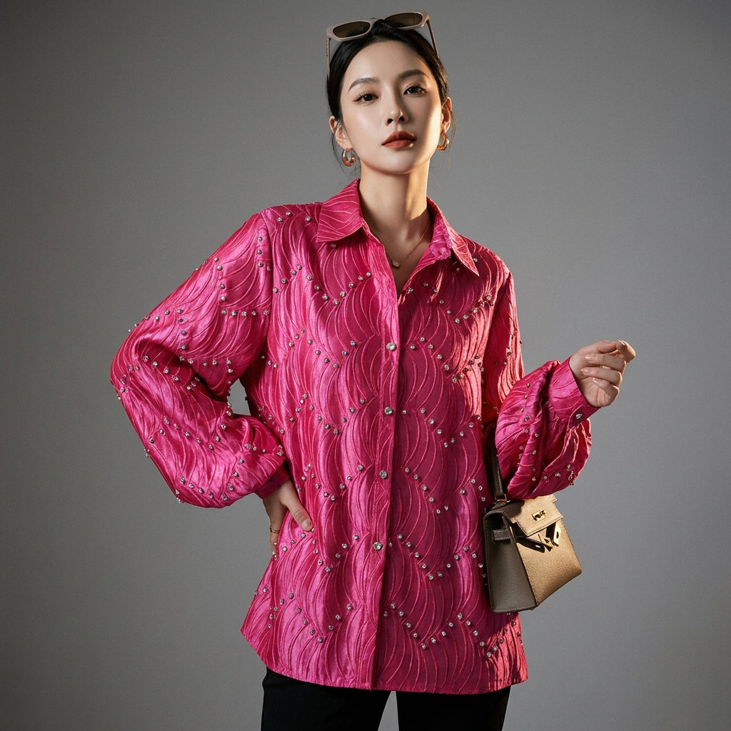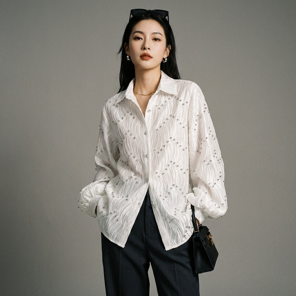 Chemise col polo femme ornée de diamants - K-fashion élégante