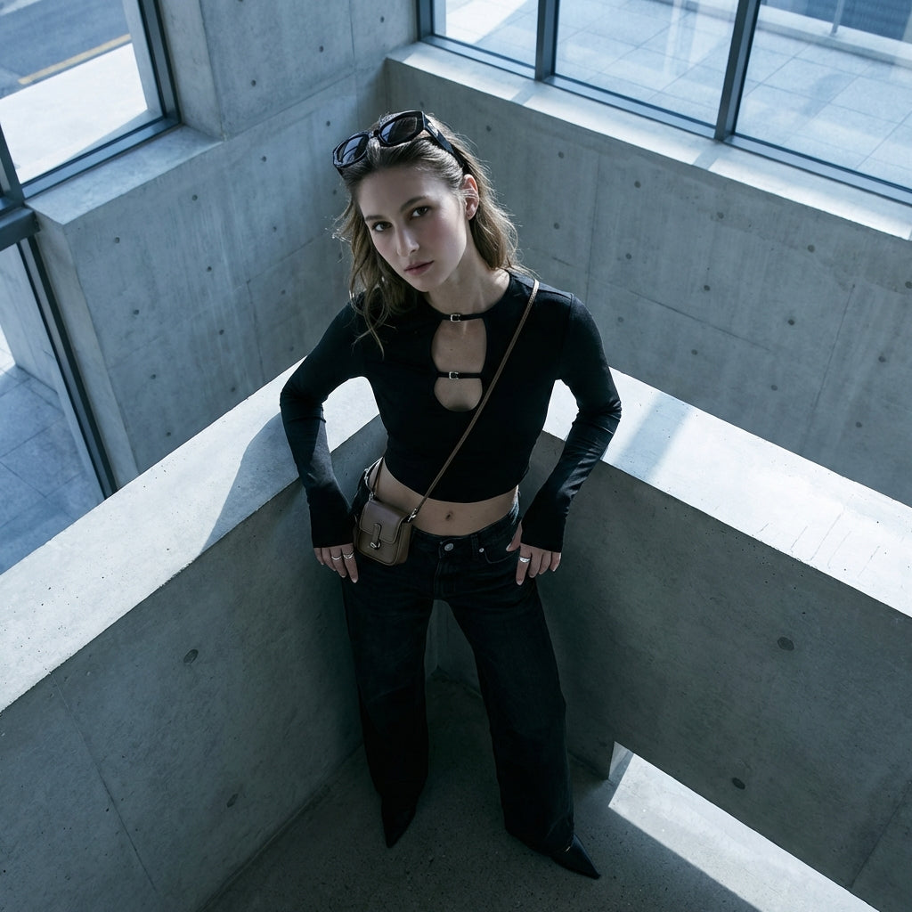 • Typ: Crop Top, Slim fit. Krótki i dopasowany krój, który podkreśla sylwetkę, idealny do noszenia warstwowo lub samodzielnie.