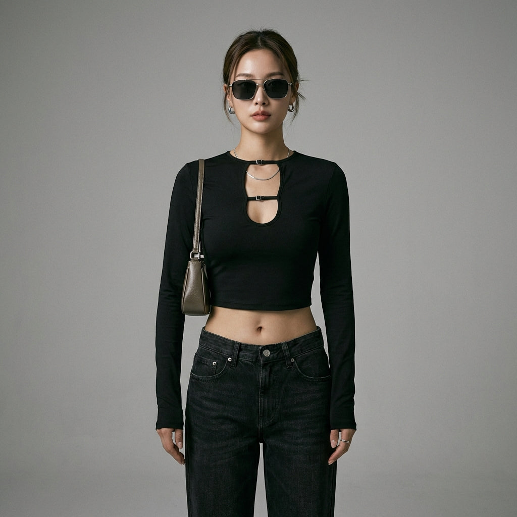 Ten krótki t-shirt to idealny element, aby wprowadzić dawkę stylu K-fashion do Twojej garderoby, łącząc komfort i nowoczesność.