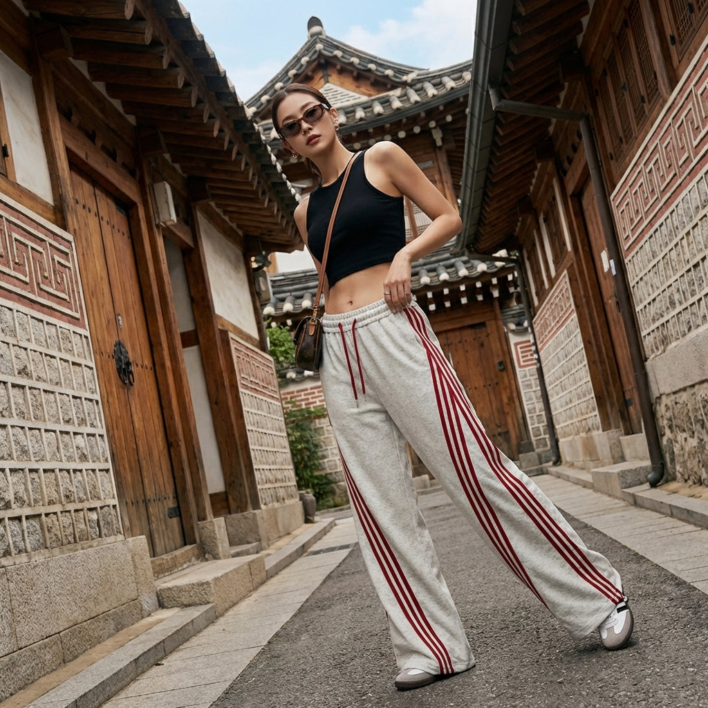 - Styl: Koreański streetwear, Retro, Casual. Te spodnie ucieleśniają swobodną i modną estetykę koreańskiej mody miejskiej, z nutą retro.