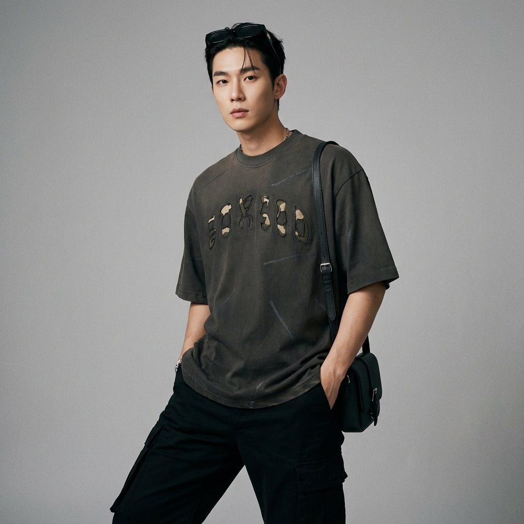 - Styl: Streetwear, K-fashion, Casual. Ten t-shirt ucieleśnia ducha koreańskiej mody miejskiej, łącząc komfort i styl z modnym akcentem.