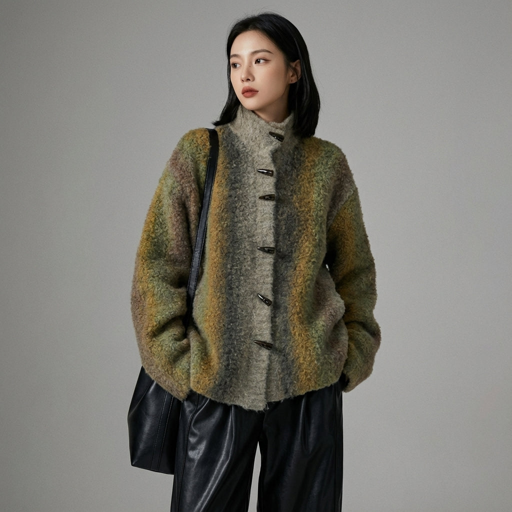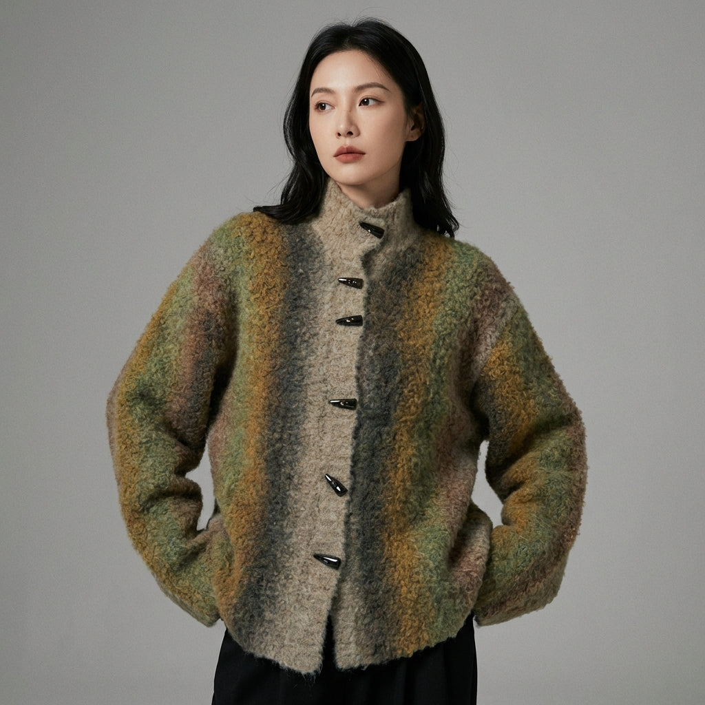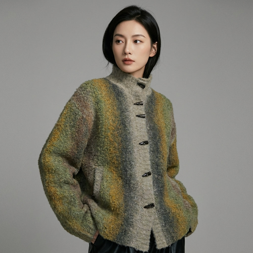 Przyjmij swobodny i elegancki wygląd z naszym dzianinowym kardiganem, idealnym do nakładania warstw na Twoje stroje. Jego stójka i kontrastowy dwukolorowy design dodają nutę nowoczesności do tego ponadczasowego klasyka! ✨