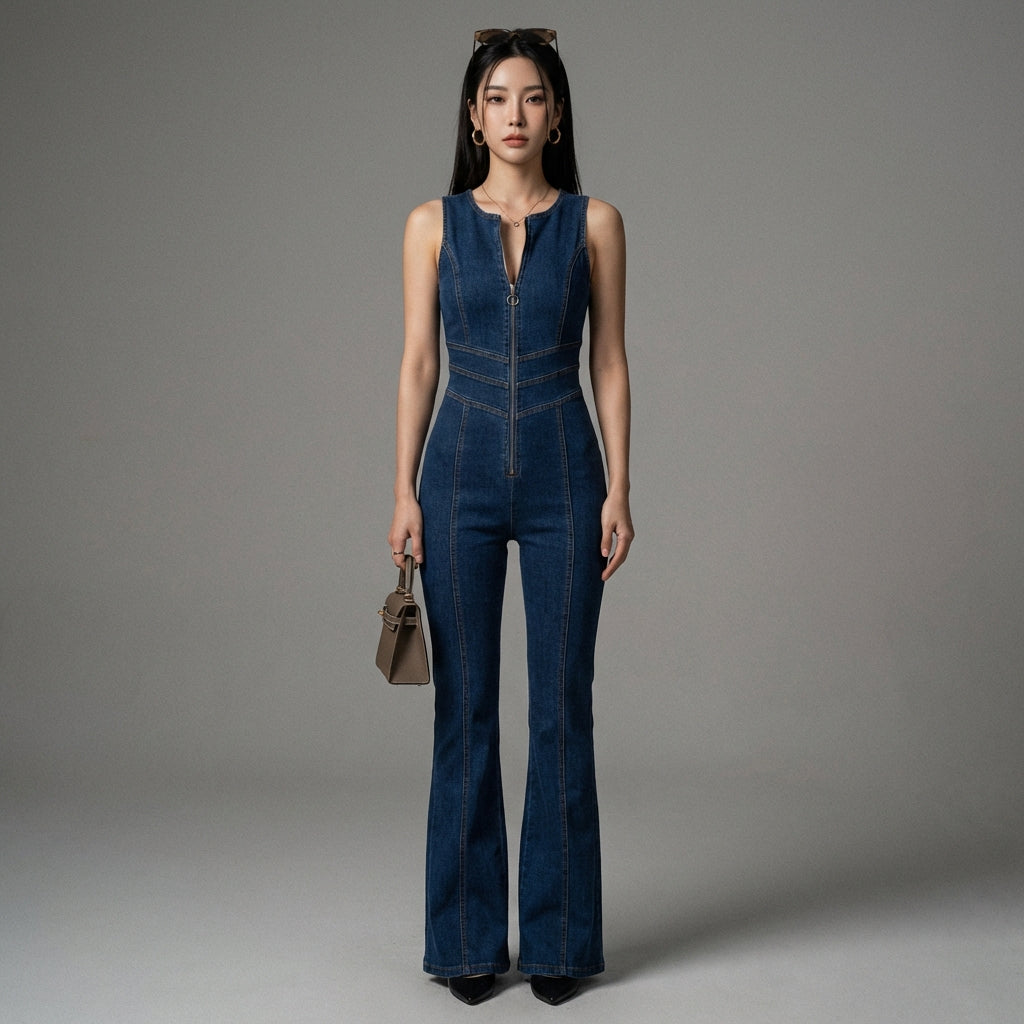 Adoptez un look audacieux et intemporel avec notre combinaison en jean taille haute, inspirée du style rétro. Sa coupe ajustée et sa fermeture éclair discrète mettent en valeur la silhouette pour un style affirmé ! 👖