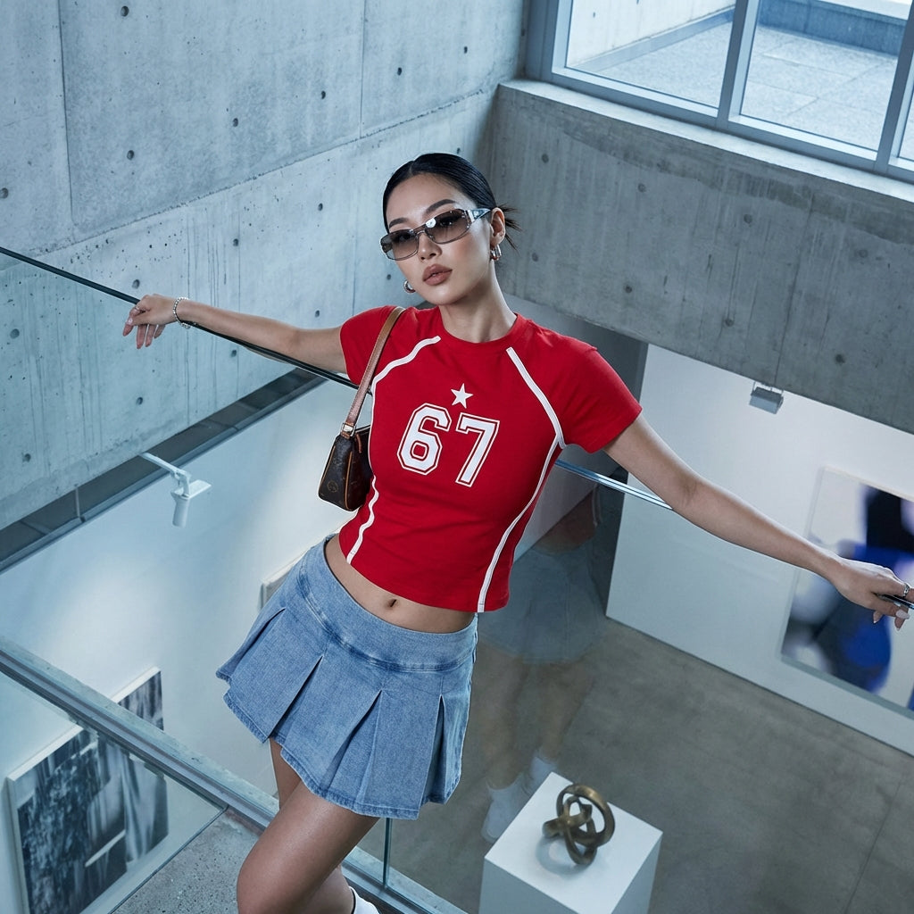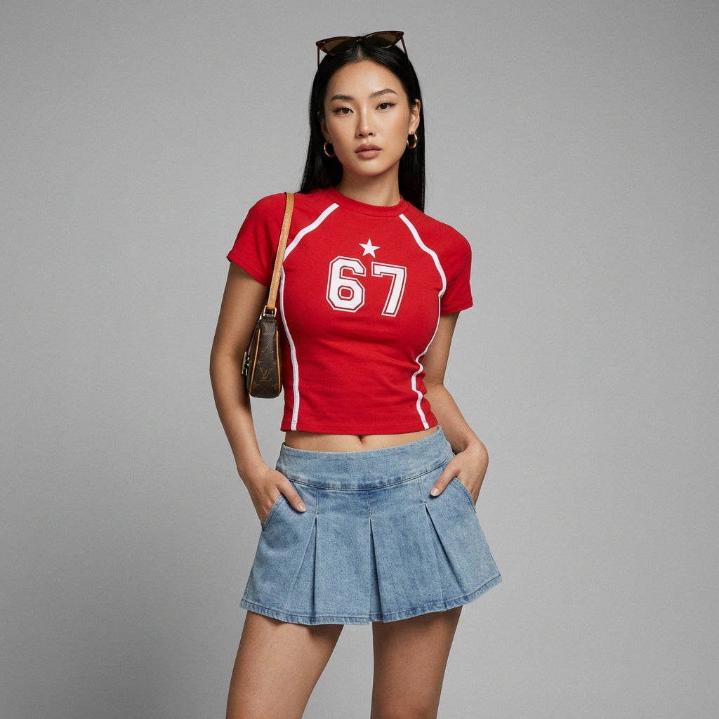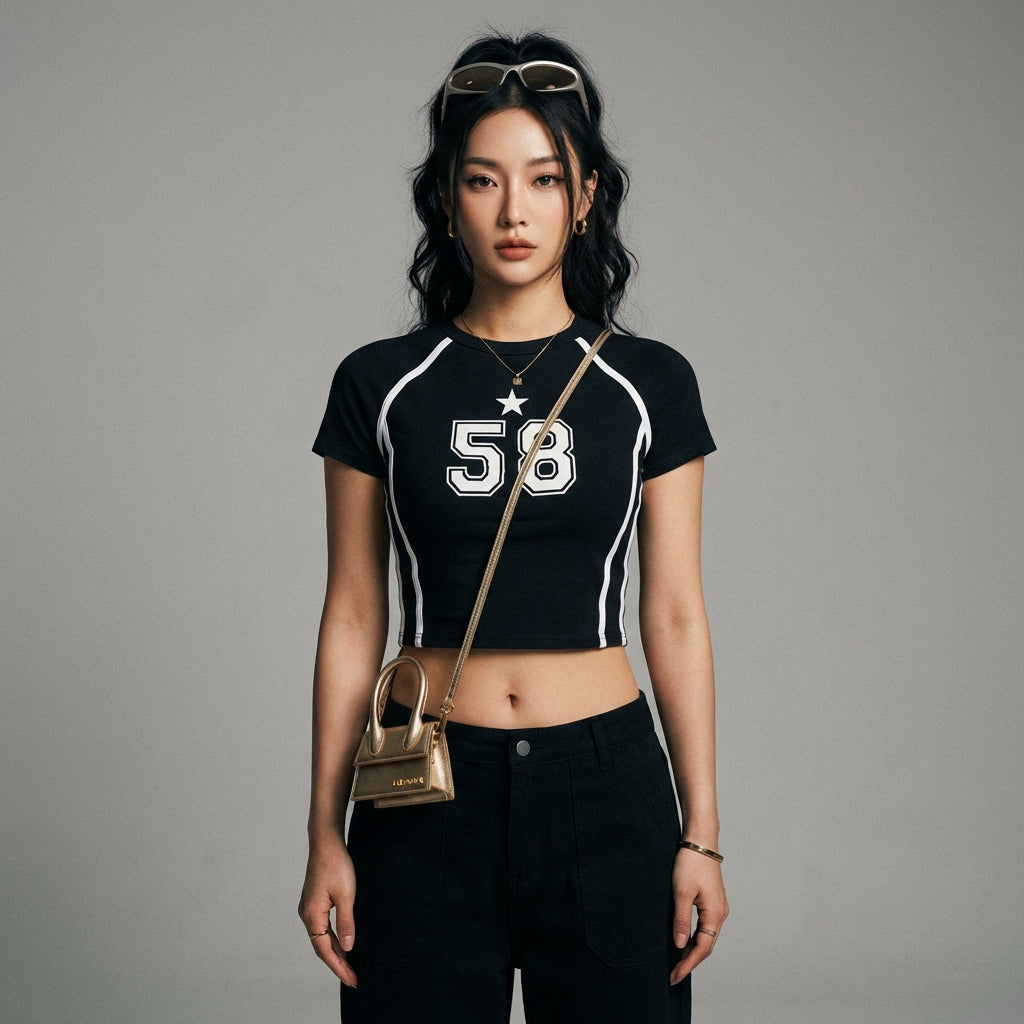 - Style : Streetwear, K-fashion, Tendance. Ce crop top incarne le dynamisme de la mode urbaine coréenne, idéal pour un look décontracté et stylé.