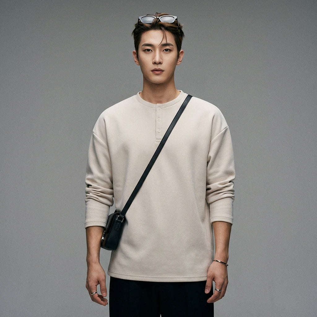 • Style : Minimaliste, Streetwear, K-fashion. Un design sobre et moderne qui s'intègre parfaitement aux tendances actuelles de la mode coréenne.