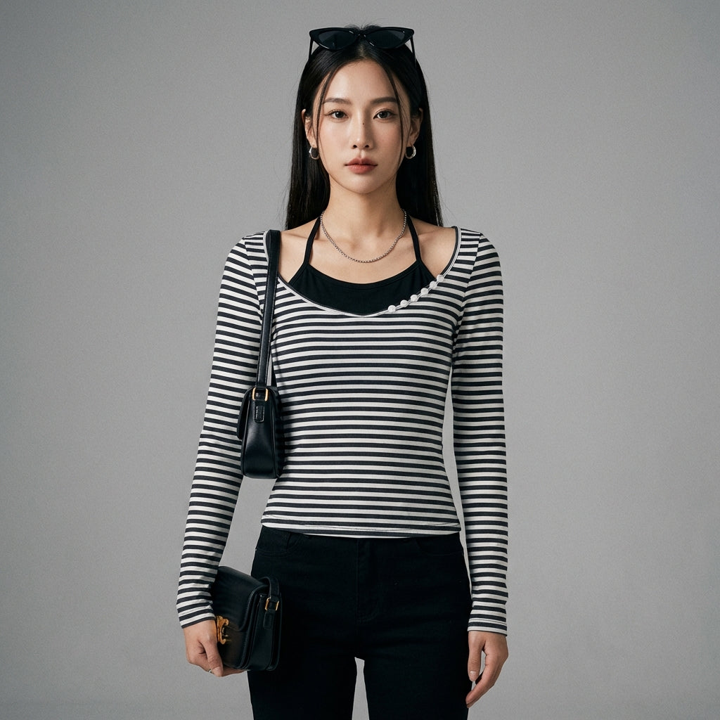 Parfait pour un usage quotidien, ce T-Shirt Henley est la pièce idéale pour un look soigné sans effort, reflétant une mode coréenne inspirée par le confort et l'élégance discrète.