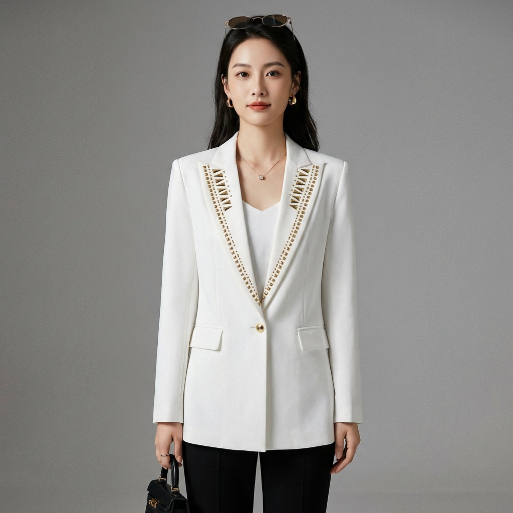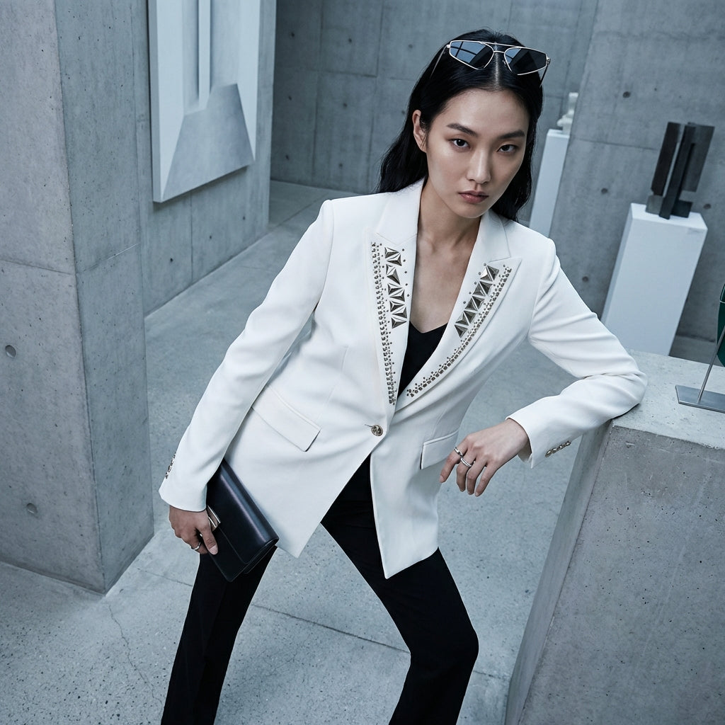 - Estilo: K-fashion, Elegante, Commuting. Este blazer incorpora a sofisticação da moda coreana, ideal para o escritório ou um passeio casual chique.