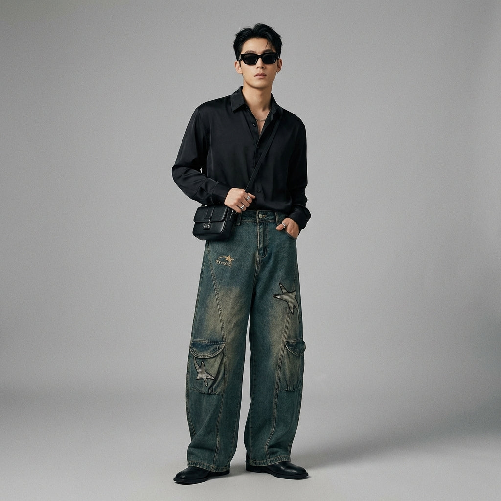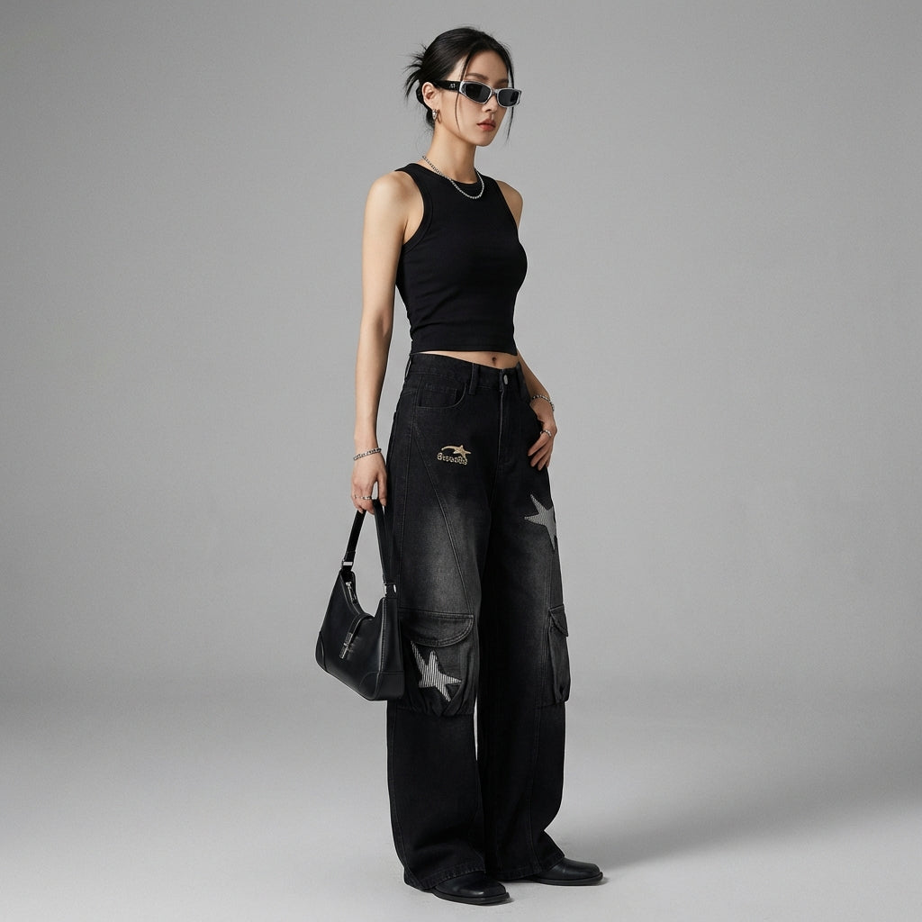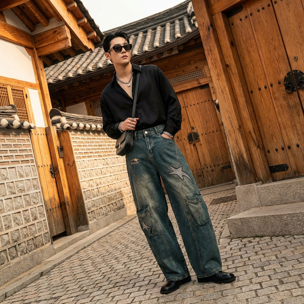 Esta calça jeans larga é a aliada perfeita para quem busca conforto, estilo e originalidade, adicionando um toque retrô e streetwear inspirado na moda coreana.