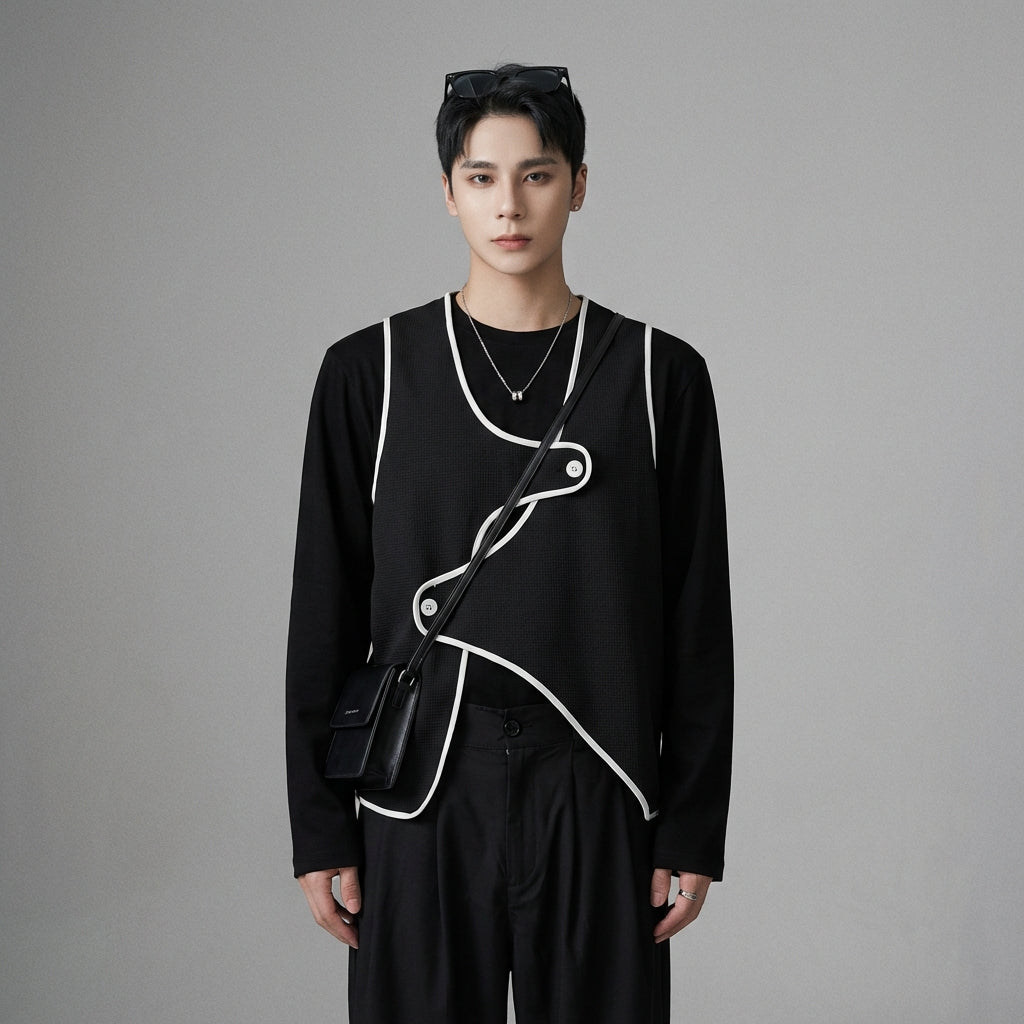 - Estilo: K-fashion, Streetwear, Casual. Este colete incorpora a estética descontraída e moderna da moda coreana, perfeito para um estilo urbano.