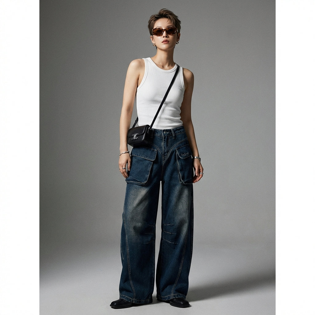 - Estilo: Streetwear, K-fashion, Casual. Esta calça jeans incorpora o espírito urbano e moderno, perfeita para um visual moderno e marcante.