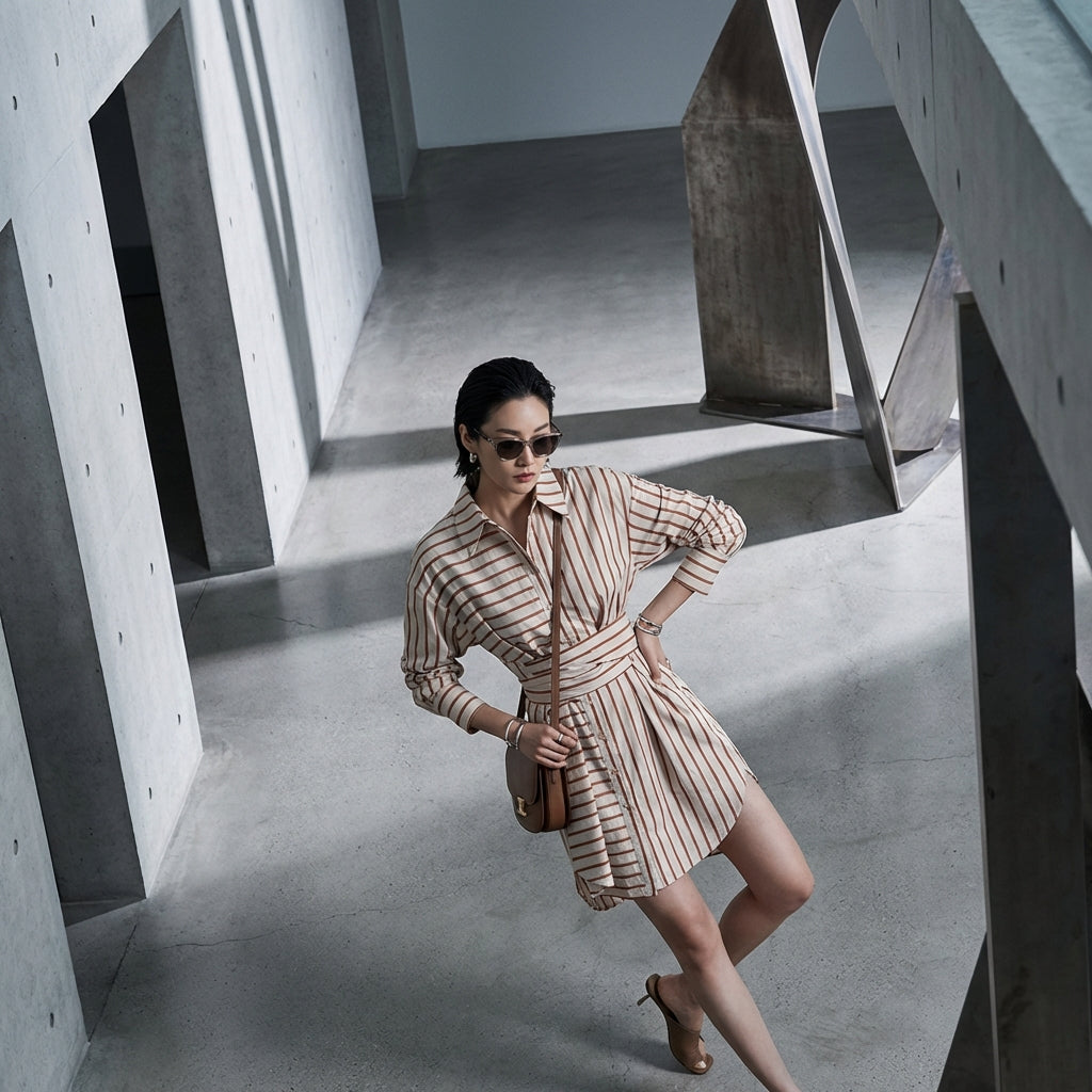 Com este vestido chemise, expresse sua individualidade e seu senso de estilo. Seu design único e conforto o tornam um item essencial para as amantes da moda coreana.
