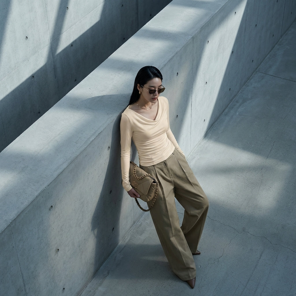 - Estilo: Elegante, Minimalista, K-fashion. Esta camiseta incorpora a elegância discreta e as linhas limpas da moda coreana, ideal para um visual sofisticado.