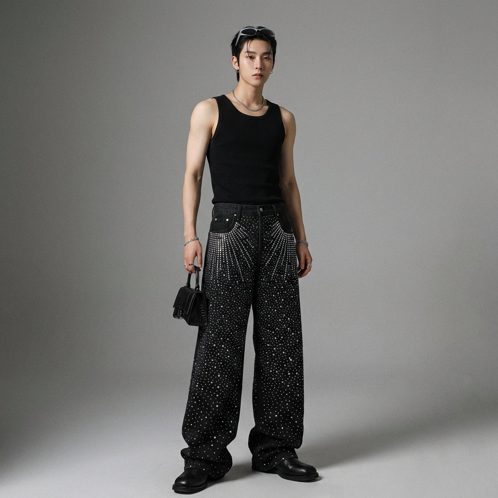 - Estilo: Streetwear, Casual, Retrô. Esta calça jeans reflete a essência da moda urbana coreana, com um toque vintage e um visual resolutamente moderno.