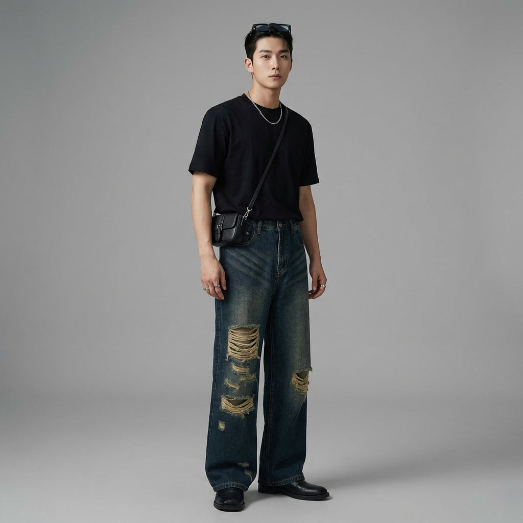 Afirme seu estilo com nossa calça jeans reta desbotada, projetada para um visual descontraído e moderno. Seu corte amplo e detalhes sutilmente desgastados a tornam um item essencial para um look streetwear marcante e confortável no dia a dia! ✨