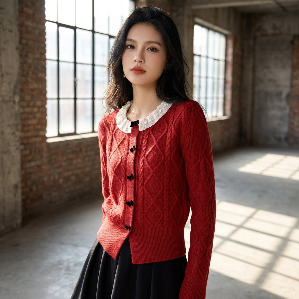 - Estilo: Moda coreana, Vintage, Chique, Elegante. Este cardigã reflete a estética refinada da moda coreana, perfeito para um look casual ou sofisticado.