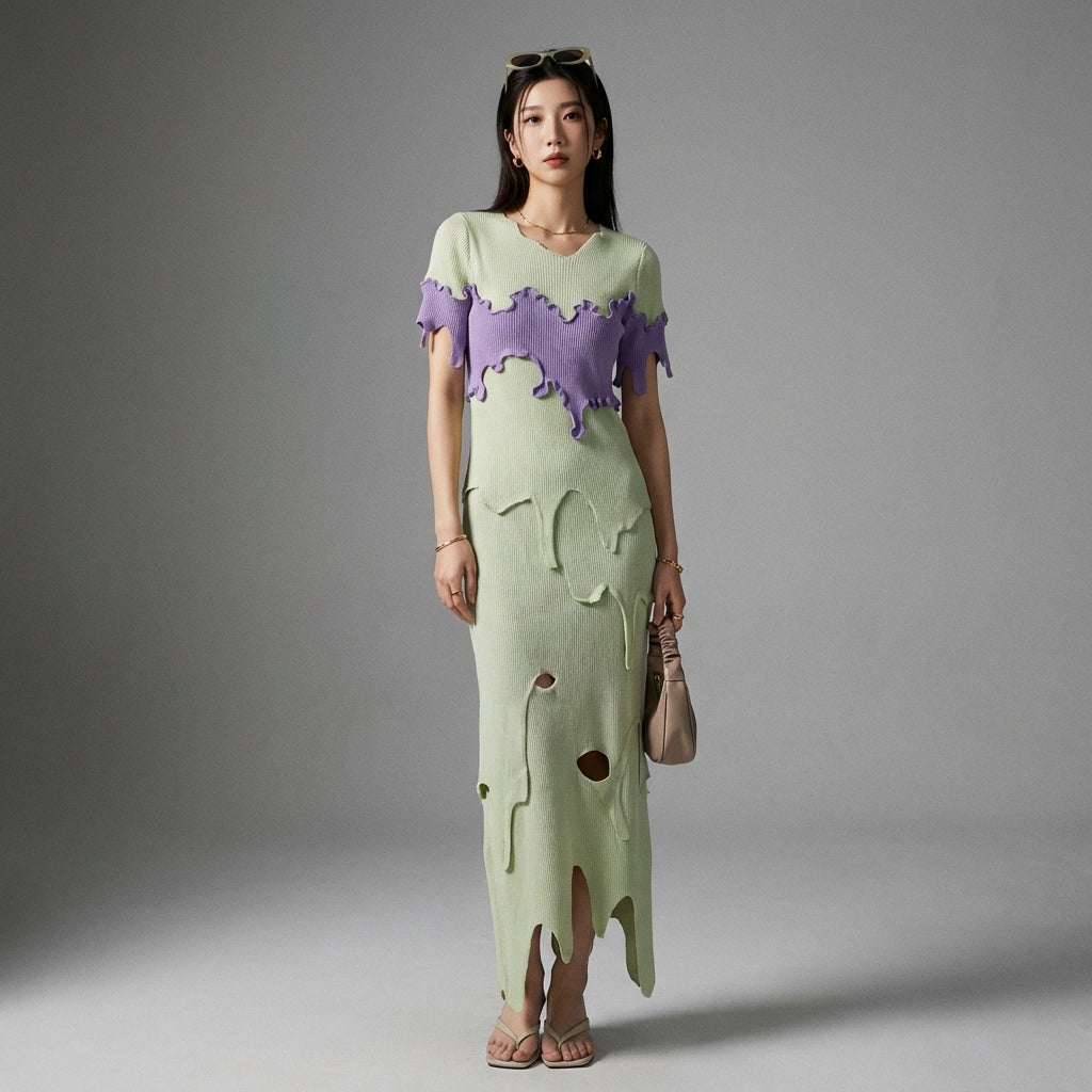 - Tipo: Conjunto de duas peças, Saia irregular, Top contrastante. Um design inovador que oferece uma silhueta dinâmica e estilosa.