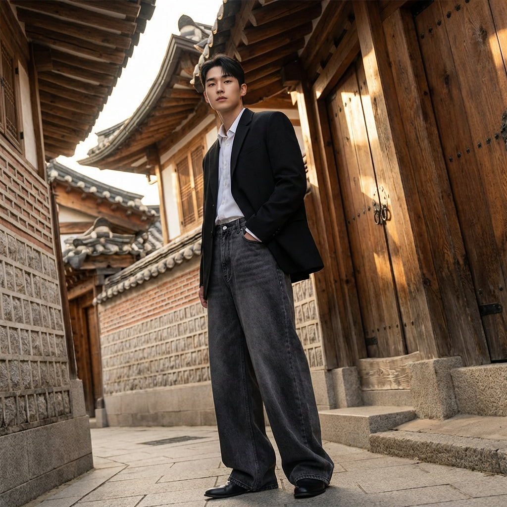 Acești blugi sunt aliatul perfect pentru o garderobă stilată și confortabilă, reflectând spiritul modei coreene contemporane.