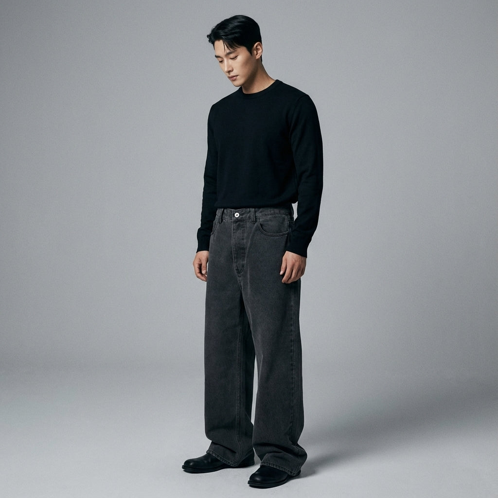 Jean ample coupe droite homme, denim foncé - Koreanxwear