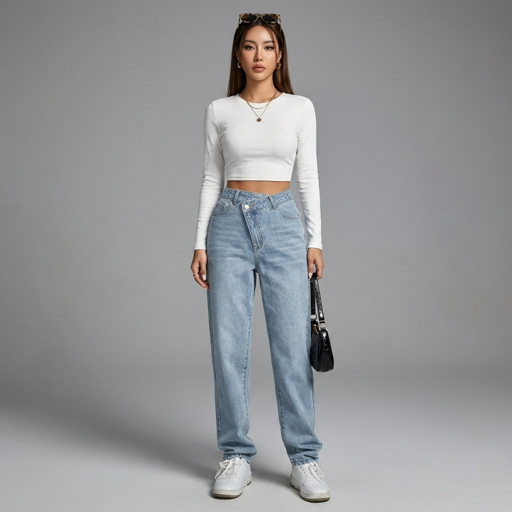 Acești blugi din denim sunt piesa ideală pentru cele care caută atât stil, confort, cât și o notă de modă coreeană în ținutele lor zilnice. Ușor de asortat, vor deveni rapid un favorit.