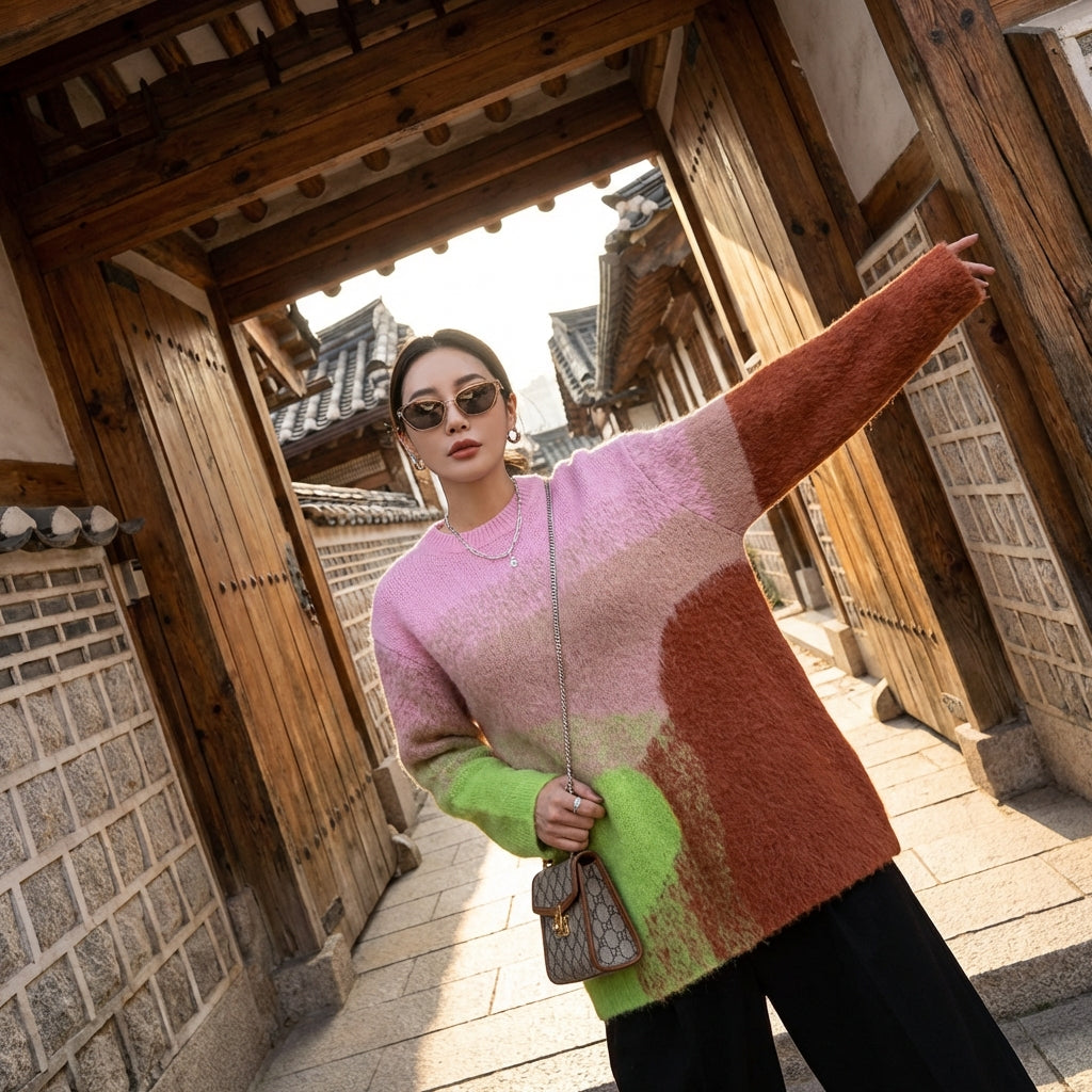 Alegând acest pulover, optezi pentru o piesă versatilă care combină confortul, stilul și tendințele, perfectă pentru a-ți îmbunătăți garderoba cu o notă de modă coreeană.