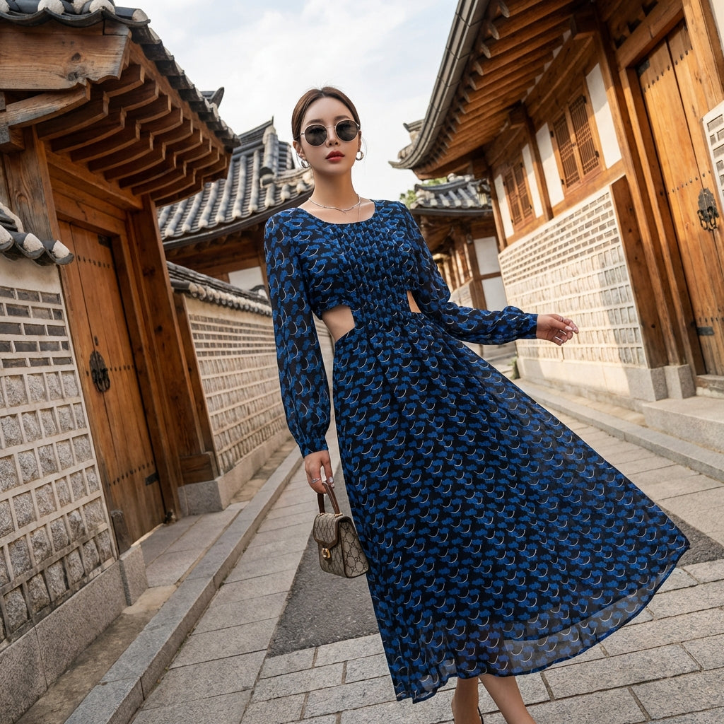 - Stil: Minimalistisk, Elegant, Trendig. Inspirerad av K-mode, förkroppsligar denna klänning modern sofistikering med en djärv touch.