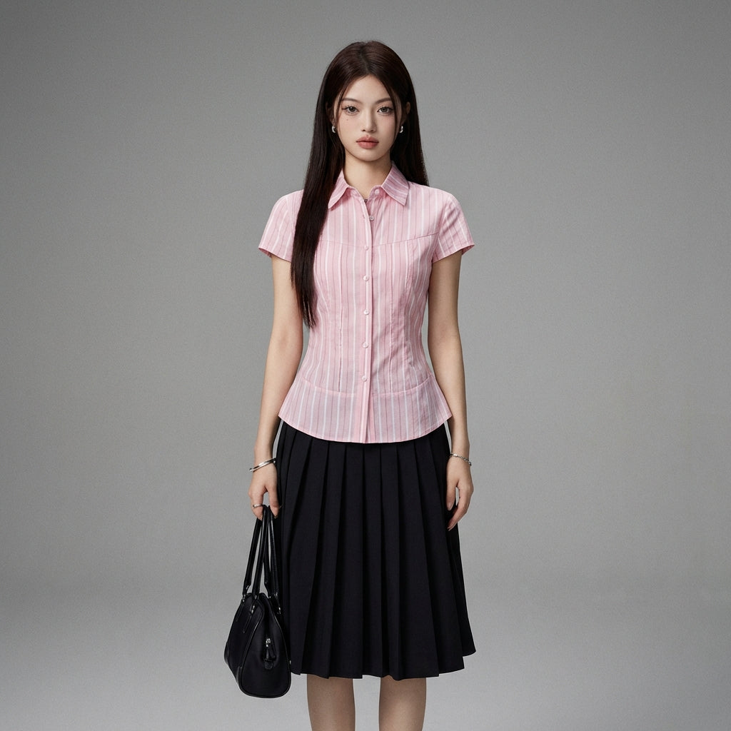 Skaffa en fräsch och elegant look med vår rosa randiga blus, perfekt för en feminin och modern stil. Dess figursydda passform framhäver din silhuett med chic och diskretion! 🌸