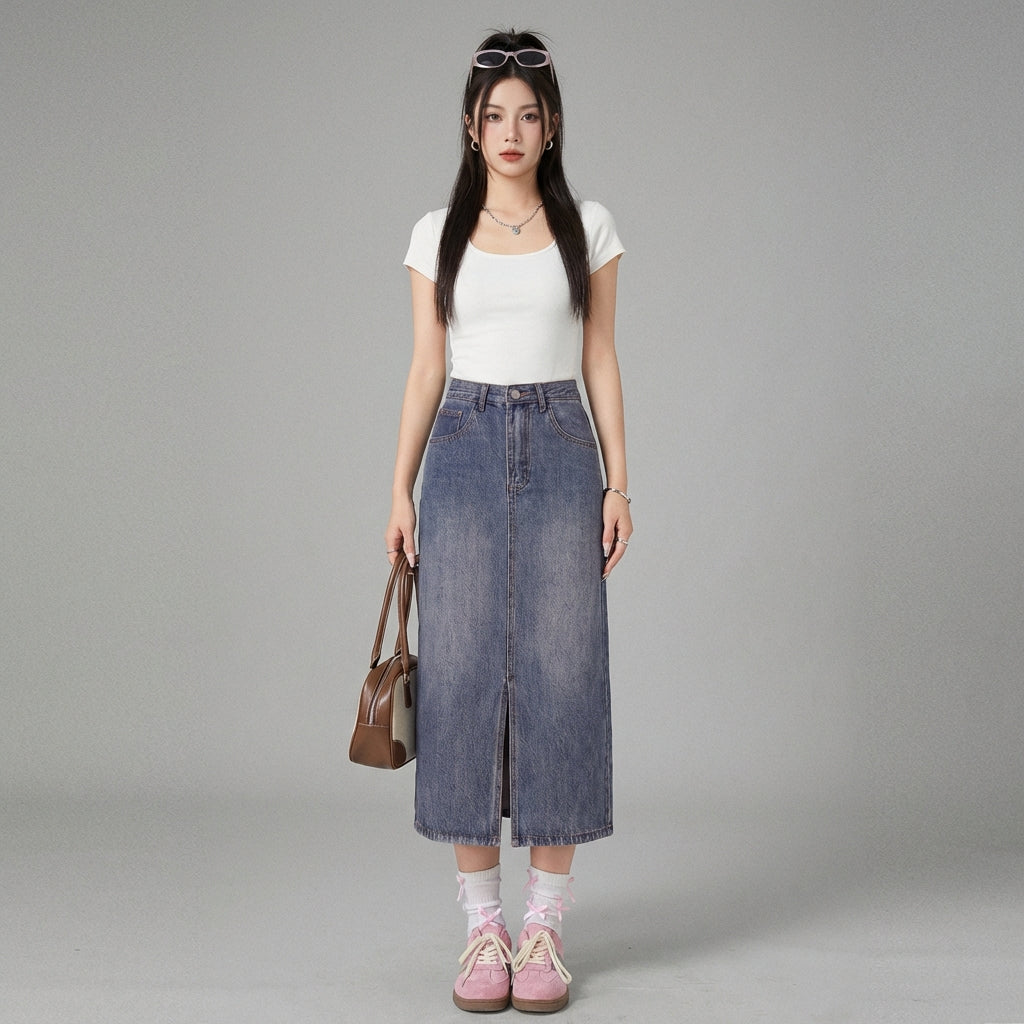Uttryck din stil med vår långa jeanskjol, med en elegant slits och en smickrande hög midja. Detta trendiga plagg kombinerar komfort och modernitet, perfekt för en avslappnad eller mer sofistikerad look! ✨