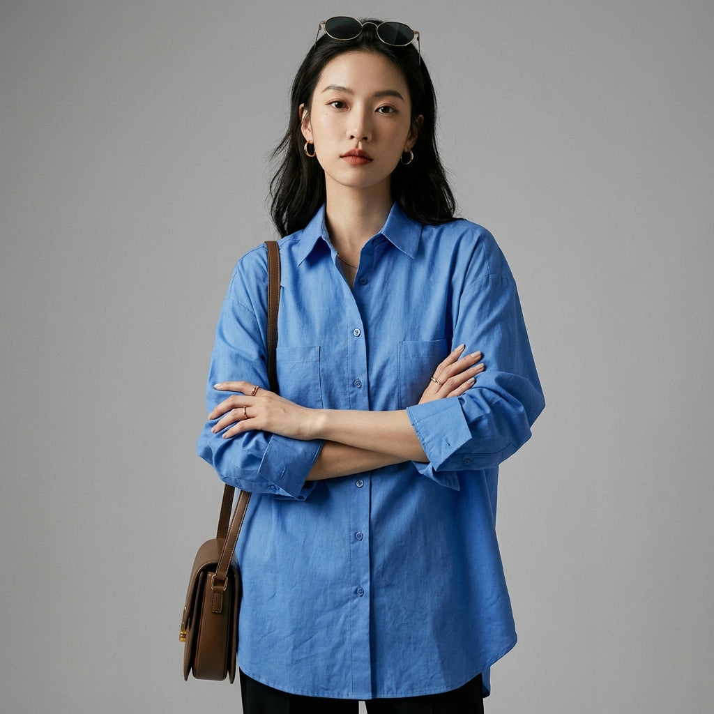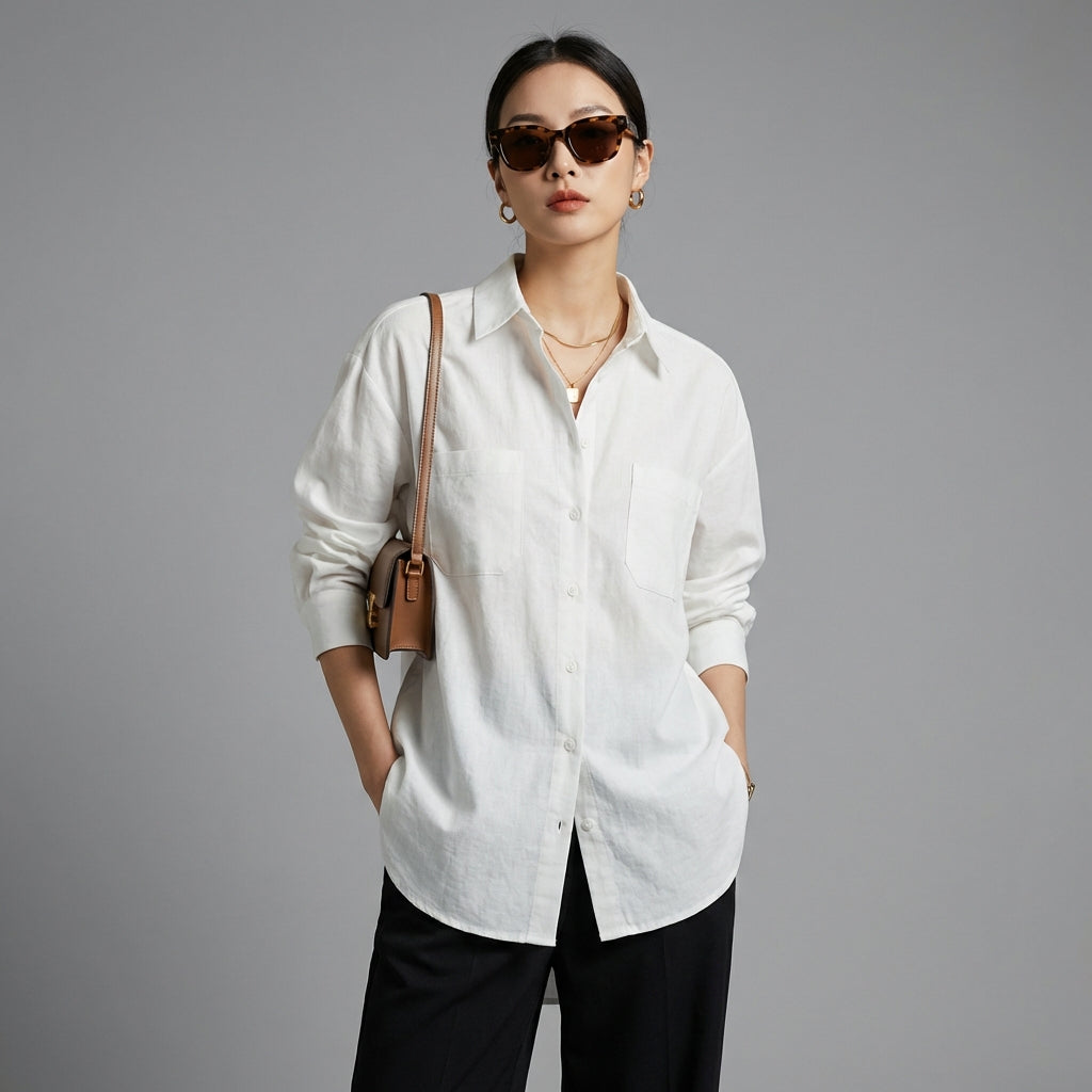 - Stil: Minimalistisk, Streetwear, K-fashion. Denna skjorta förkroppsligar den avslappnade elegans som är typisk för koreanskt mode, perfekt för en urban och trendig stil.