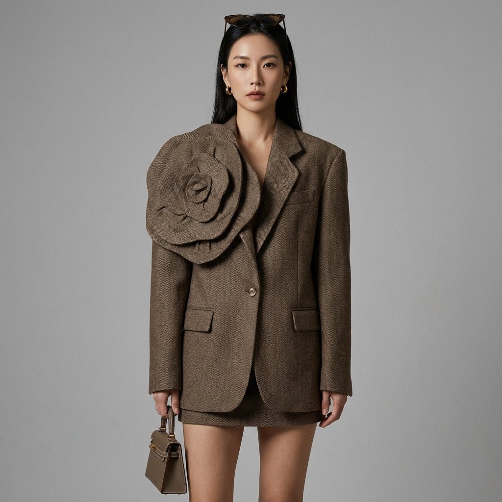 Skaffa en chic och avslappnad look med vår löst sittande kostymjacka, utsmyckad med ett retro tredimensionellt blommönster. Dess eleganta design med en knapp och flytande passform gör den till ett måste för en självsäker och bekväm stil! ✨