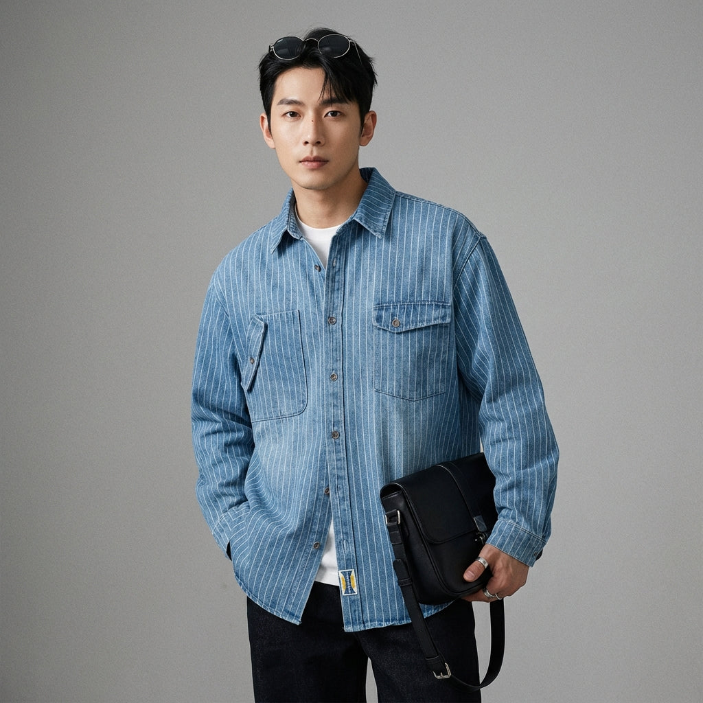 เปลี่ยนลุคให้ดูสบายๆ แต่ทันสมัยด้วยเสื้อเชิ้ตเดนิมลายทางฟอกของเรา ด้วยทรงหลวมและแขนยาว ทำให้เป็นเสื้อผ้าที่หลากหลายสำหรับทุกโอกาส ผสมผสานความสบายและสไตล์ที่ทันสมัย! ✨