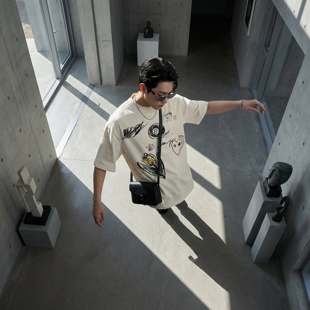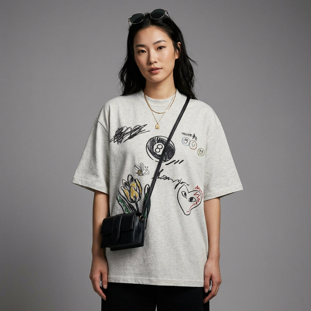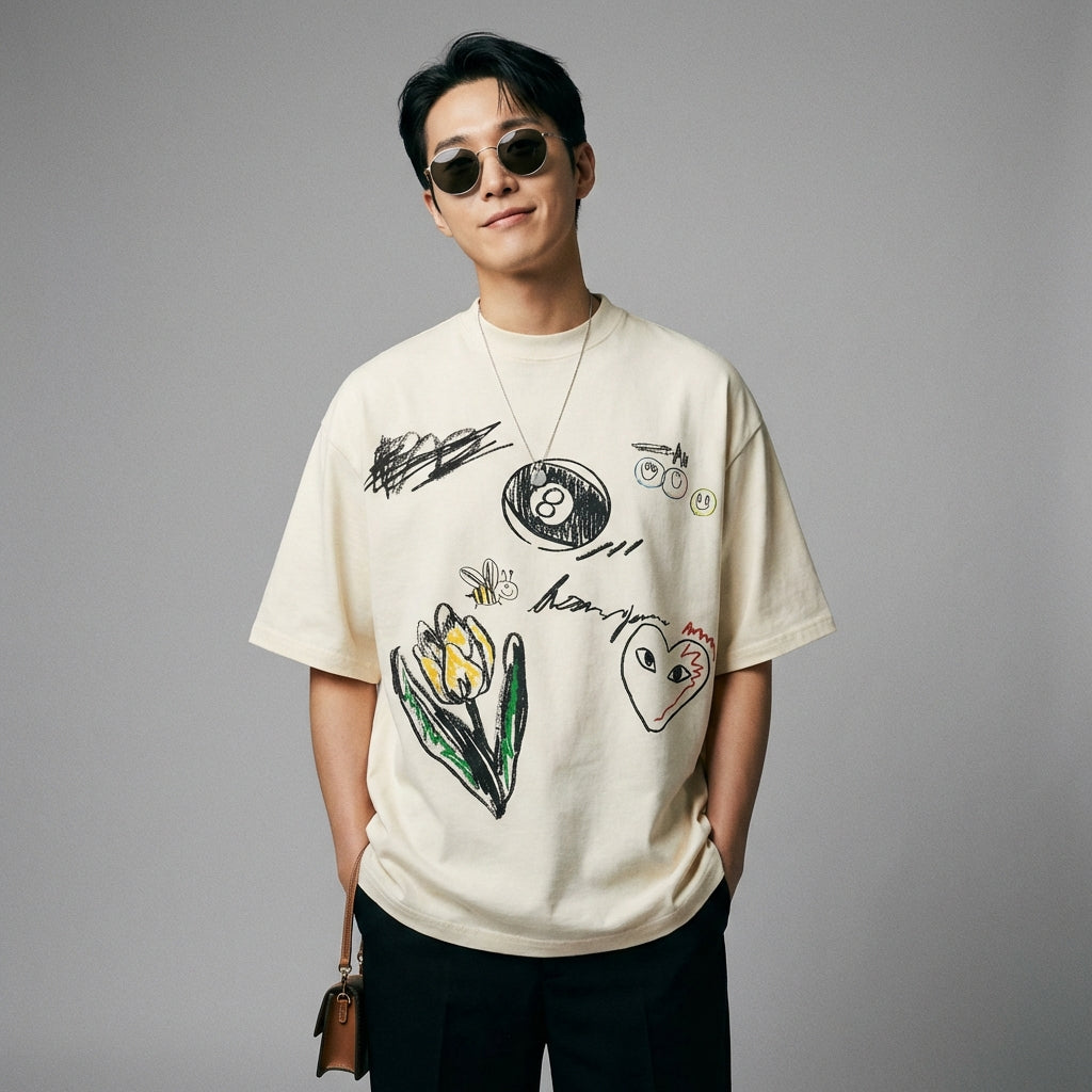 เสื้อยืดตัวนี้เป็นชิ้นสำคัญสำหรับผู้ที่ต้องการผสมผสานความสบาย สไตล์ และความแปลกใหม่เข้ากับแฟชั่นเกาหลี